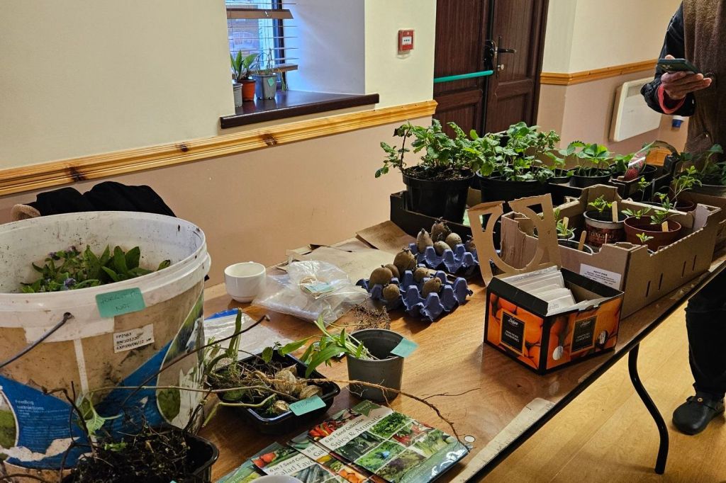I arrived early to set up tables, brought along some gardening books for people to browse, and organised spaces for seeds and plants. I also added a bit of music to make it more enjoyable. We had a small refreshments table, and I shared some soap samples for people to take home.